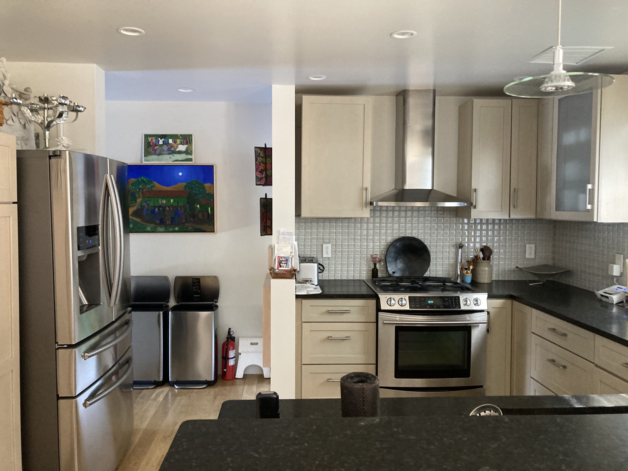 The homeowners enlisted the Praxis Design Build team to reimagine an awkward outdoor entry, demolish and rebuild the primary suite, and create additional space for their extensive art collection. As part of the project, Praxis also transformed a back porch into a spacious dining room and replaced the existing kitchen to improve both function and style. While the living room and guest suite remained untouched, the remodel significantly enhanced circulation throughout the home.