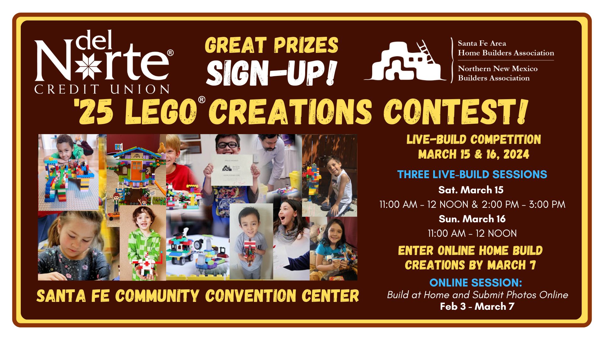 The Santa Fe Area Home Builders Association (SFAHBA) and Del Norte Credit Union (DNCU) are happy to once again host the Lego Creations Contest for Kids with great prizes.